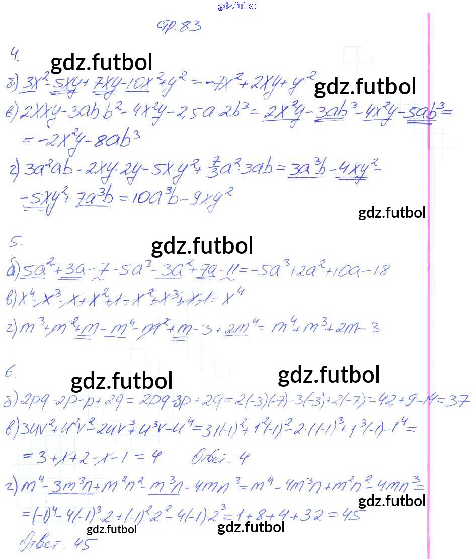 Готовые домашние задания по Алгебре за 7 класс Ключникова Рабочая тетрадь УМК 2013 ФГОС - Страницы 83