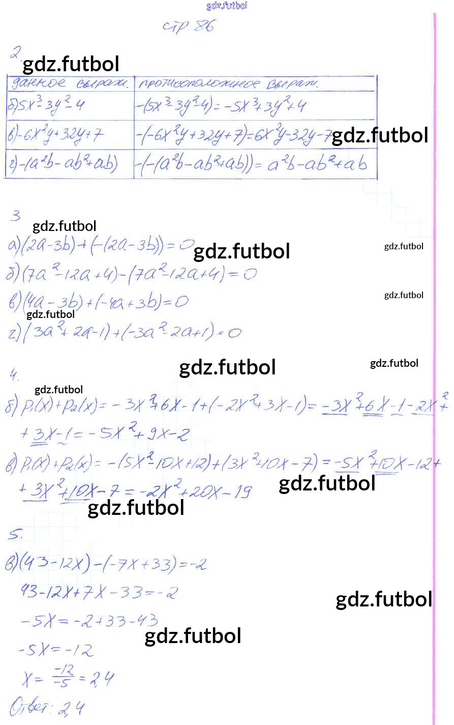 Готовые домашние задания по Алгебре за 7 класс Ключникова Рабочая тетрадь УМК 2013 ФГОС - Страницы 86