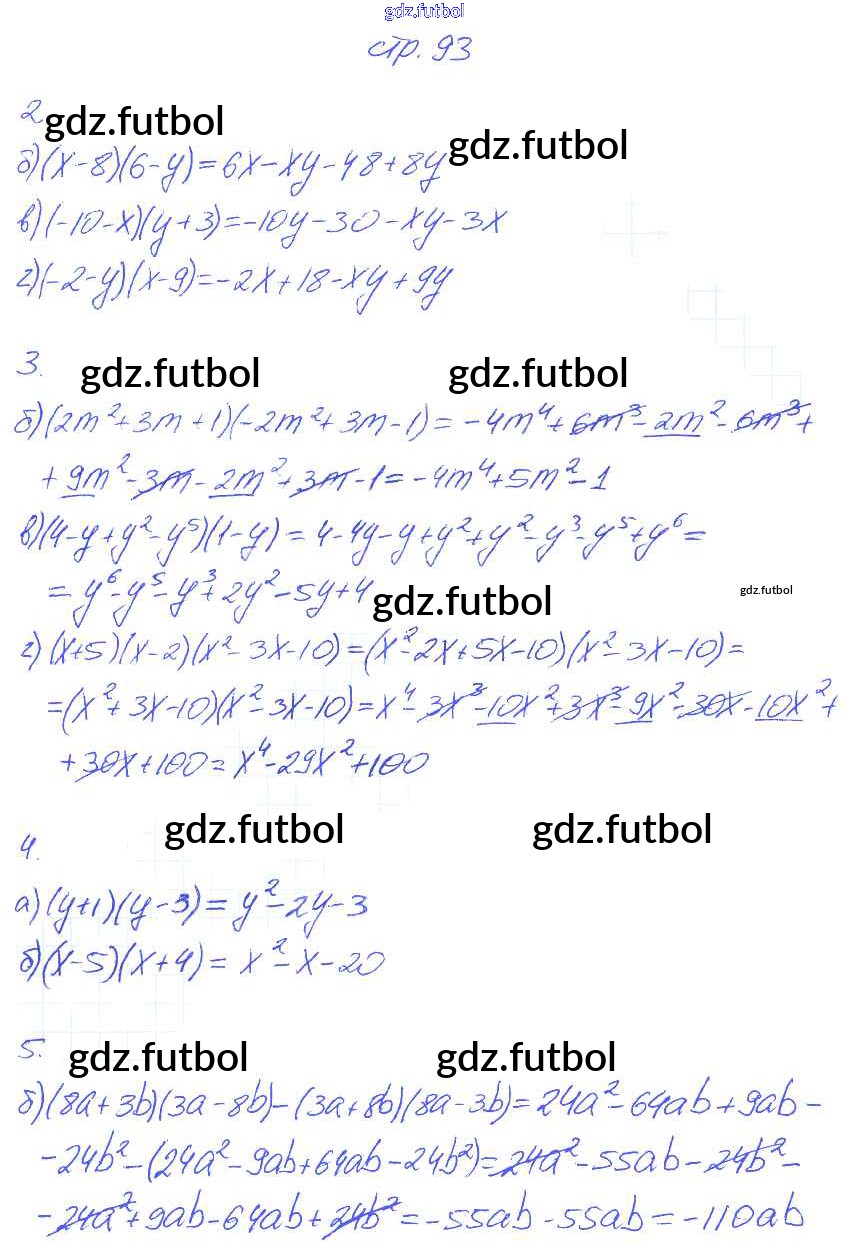 Готовые домашние задания по Алгебре за 7 класс Ключникова Рабочая тетрадь УМК 2013 ФГОС - Страницы 93