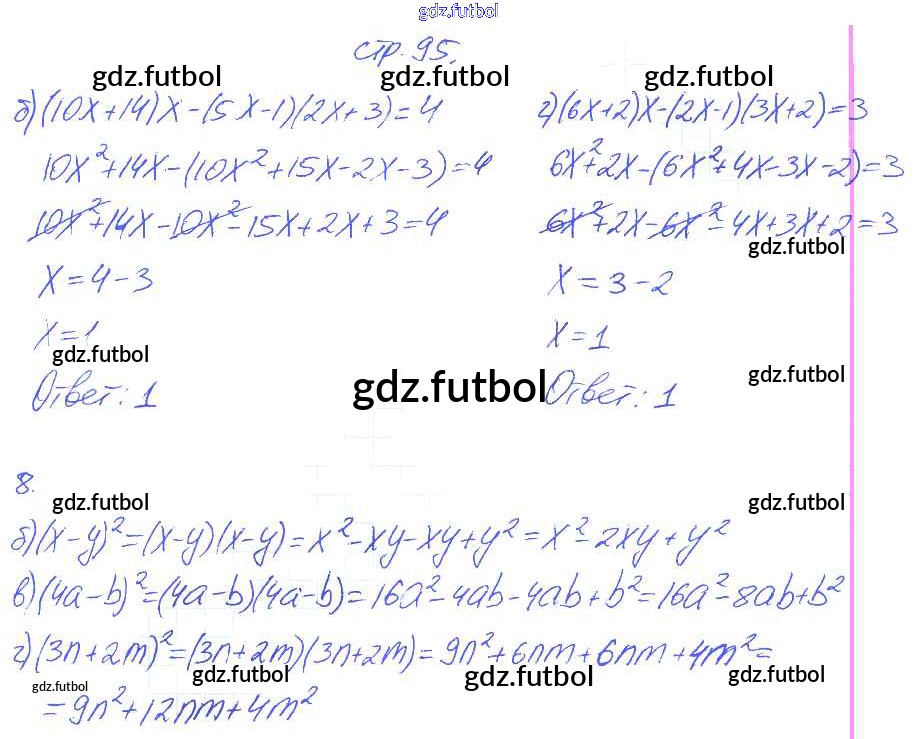 Готовые домашние задания по Алгебре за 7 класс Ключникова Рабочая тетрадь УМК 2013 ФГОС - Страницы 95