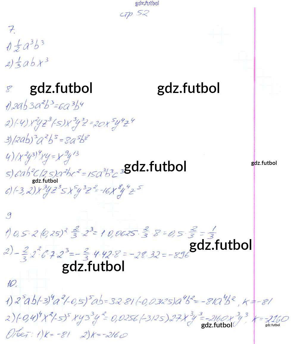 Готовые домашние задания по Алгебре за 7 класс Колягин Рабочая тетрадь УМК 2017 ФГОС - Часть 1. Страницы 52