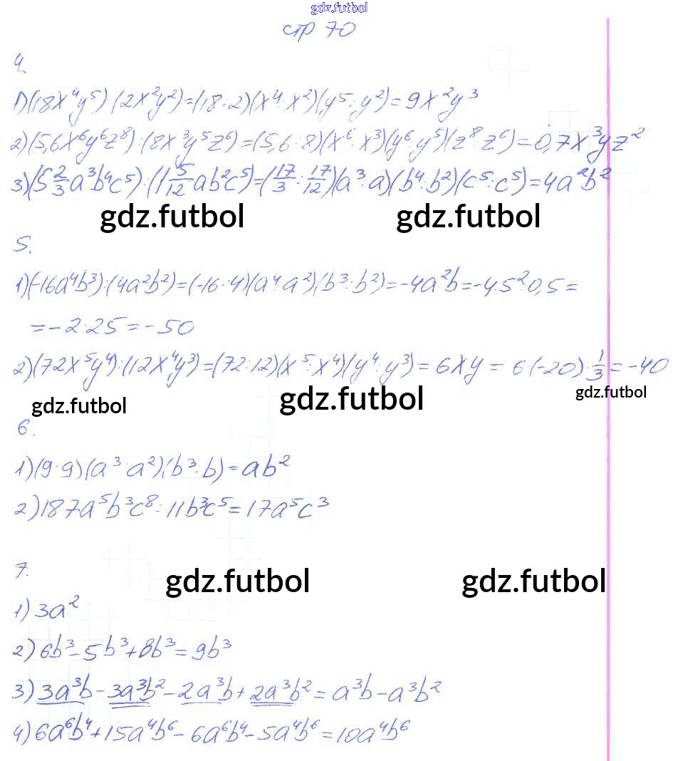 Готовые домашние задания по Алгебре за 7 класс Колягин Рабочая тетрадь УМК 2017 ФГОС - Часть 1. Страницы 70