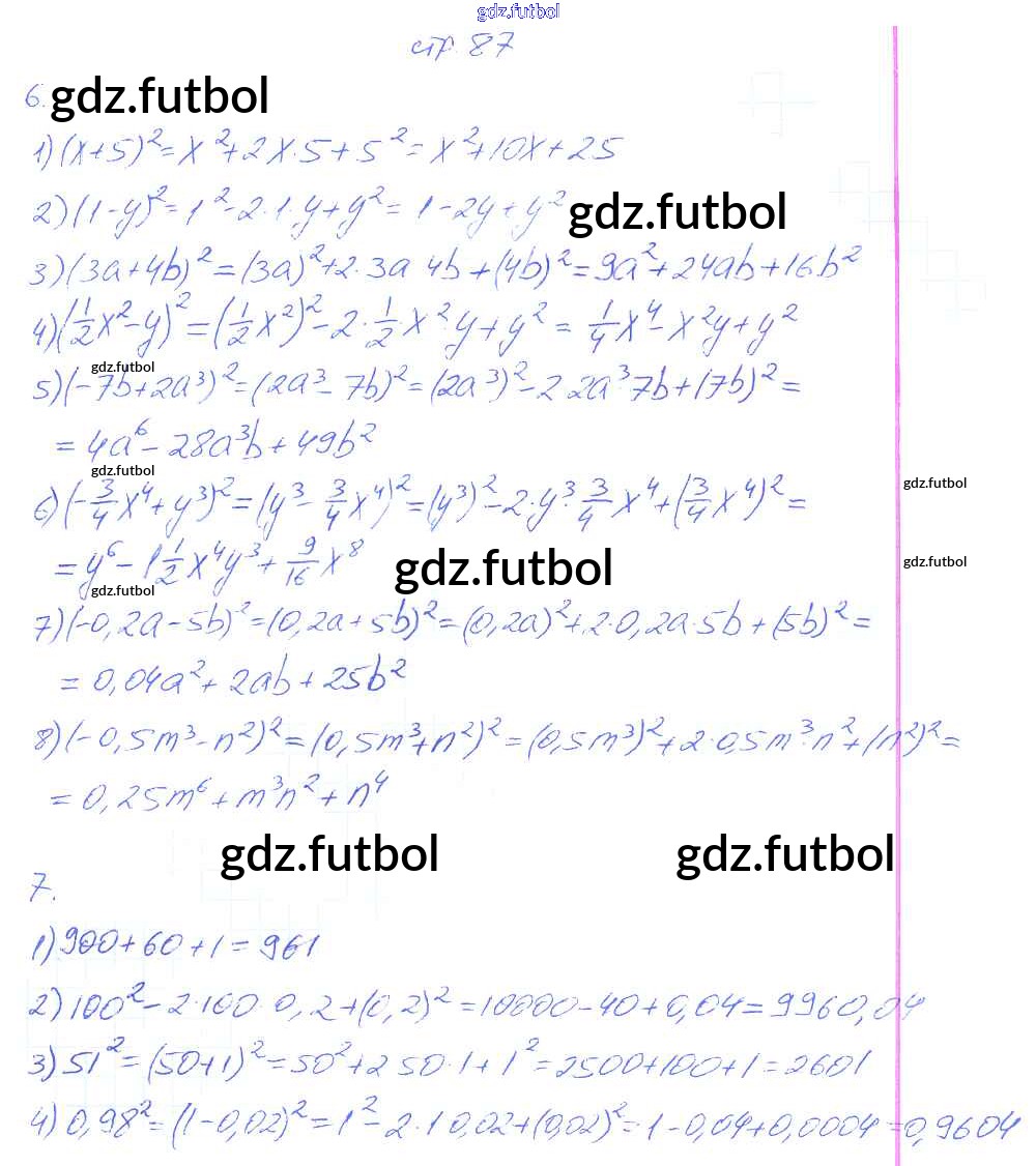 Готовые домашние задания по Алгебре за 7 класс Колягин Рабочая тетрадь УМК 2017 ФГОС - Часть 1. Страницы 87