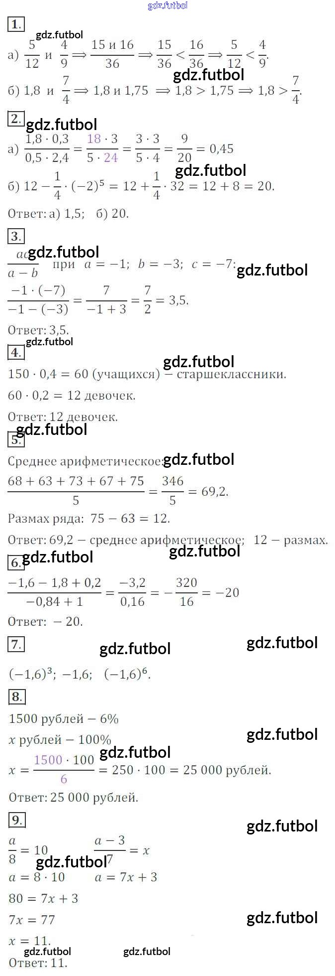Готовые домашние задания по Алгебре за 7 класс Кузнецова Контрольные работы 2018 ФГОС - Контрольная работа №1. Дроби и проценты Вариант 3