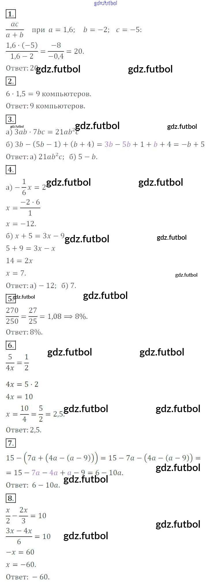 Готовые домашние задания по Алгебре за 7 класс Кузнецова Контрольные работы 2018 ФГОС - Контрольная работа №10. Итоговая работа за I полугодие Вариант 1