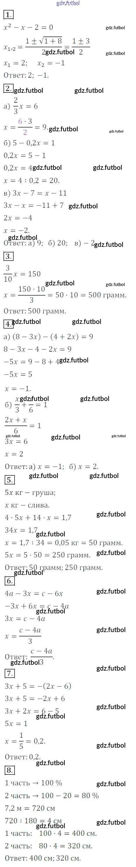 Готовые домашние задания по Алгебре за 7 класс Кузнецова Контрольные работы 2018 ФГОС - Контрольная работа №4. Уравнения Вариант 1