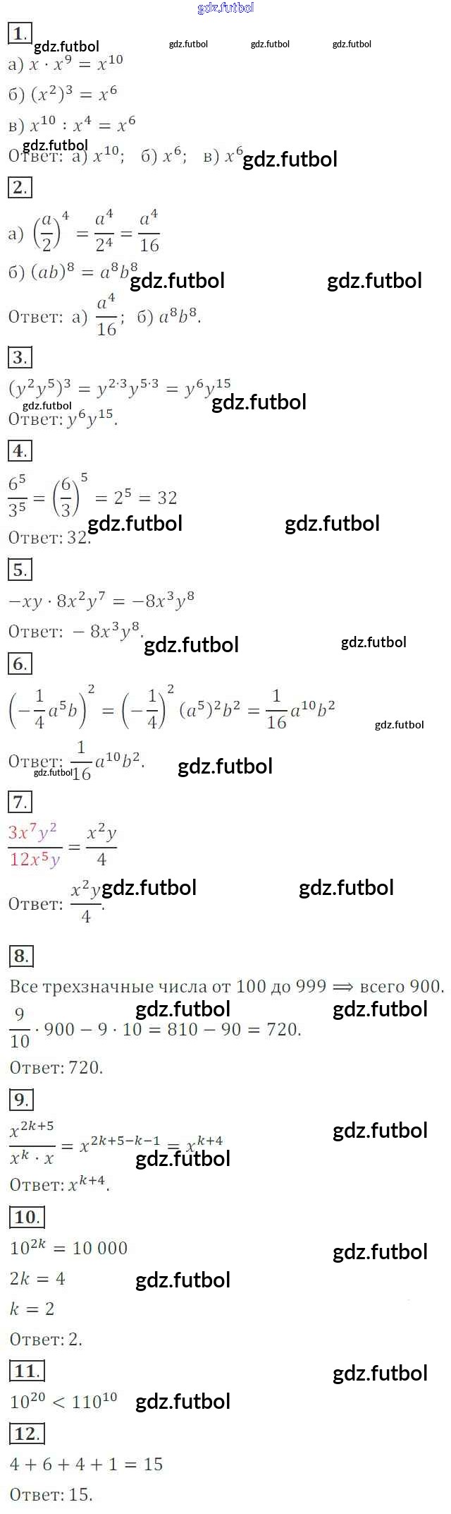 Готовые домашние задания по Алгебре за 7 класс Кузнецова Контрольные работы 2018 ФГОС - Контрольная работа №6. Свойства степени с натуральным показателем Вариант 3