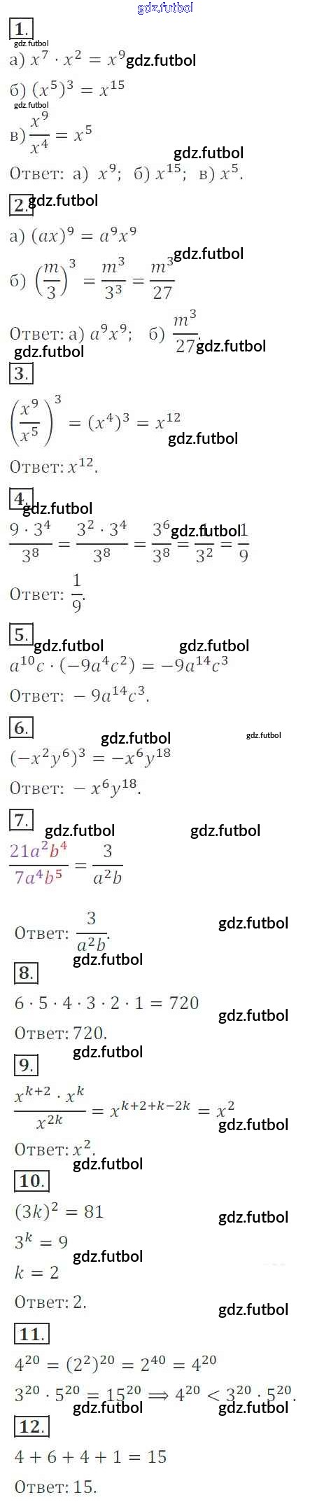 Готовые домашние задания по Алгебре за 7 класс Кузнецова Контрольные работы 2018 ФГОС - Контрольная работа №6. Свойства степени с натуральным показателем Вариант 4