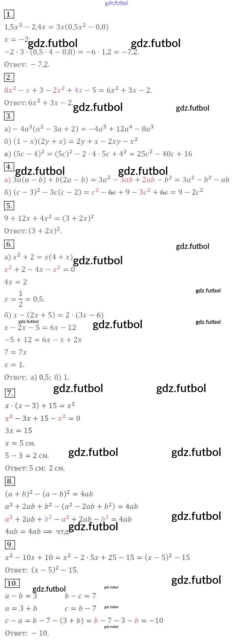 Готовые домашние задания по Алгебре за 7 класс Кузнецова Контрольные работы 2018 ФГОС - Контрольная работа №7. Многочлены Вариант 1