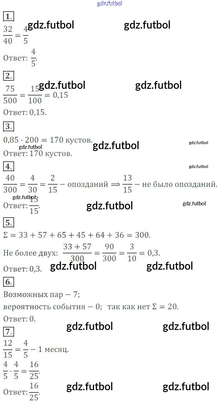 Готовые домашние задания по Алгебре за 7 класс Кузнецова Контрольные работы 2018 ФГОС - Контрольная работа №9. Частота и вероятность Вариант 1