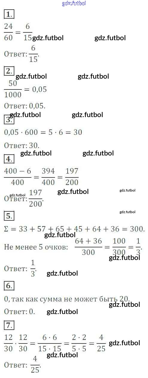 Готовые домашние задания по Алгебре за 7 класс Кузнецова Контрольные работы 2018 ФГОС - Контрольная работа №9. Частота и вероятность Вариант 2