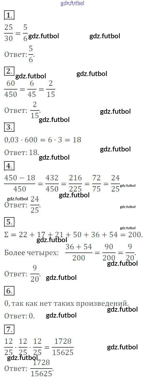 Готовые домашние задания по Алгебре за 7 класс Кузнецова Контрольные работы 2018 ФГОС - Контрольная работа №9. Частота и вероятность Вариант 4