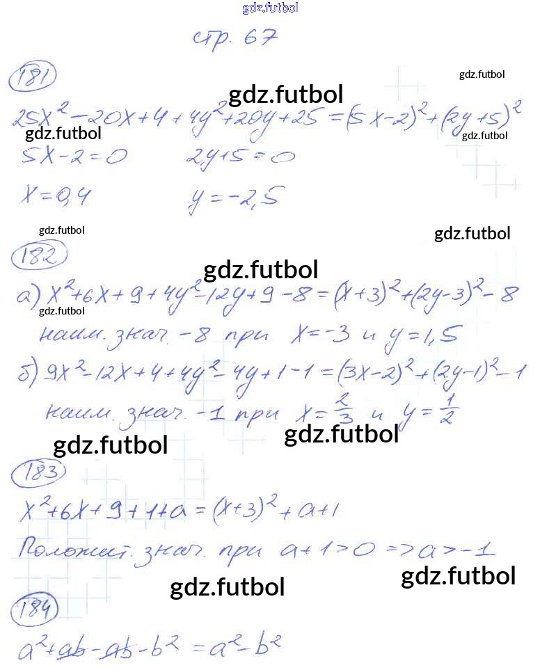 Готовые домашние задания по Алгебре за 7 класс Потапов Рабочая тетрадь МГУ - школе 2018 ФГОС - Часть 1. Страницы 67