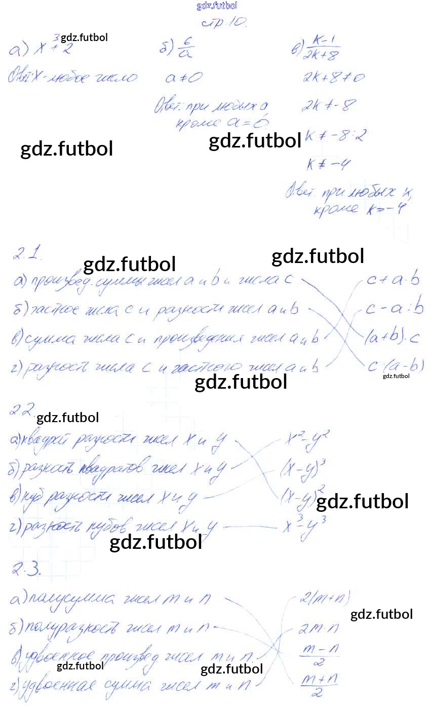 Готовые домашние задания по Алгебре за 7 класс Зубарева Рабочая тетрадь 2019 ФГОС - Часть 1. Страницы 10