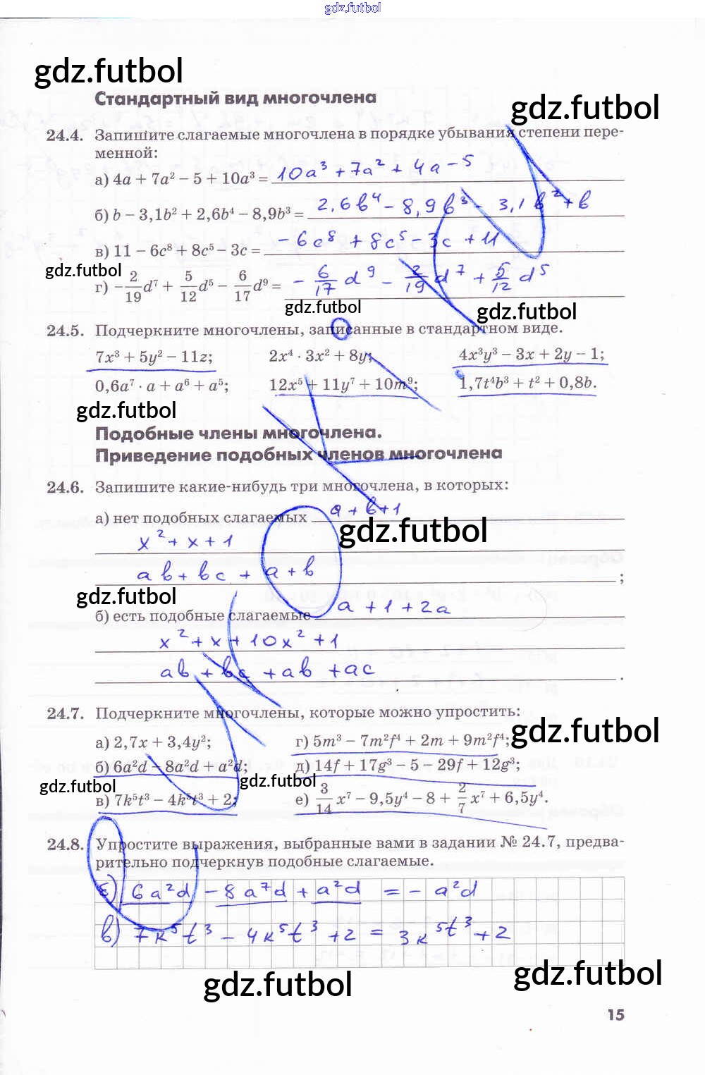Готовые домашние задания по Алгебре за 7 класс Зубарева Рабочая тетрадь 2019 ФГОС - Часть 2. Страницы 15