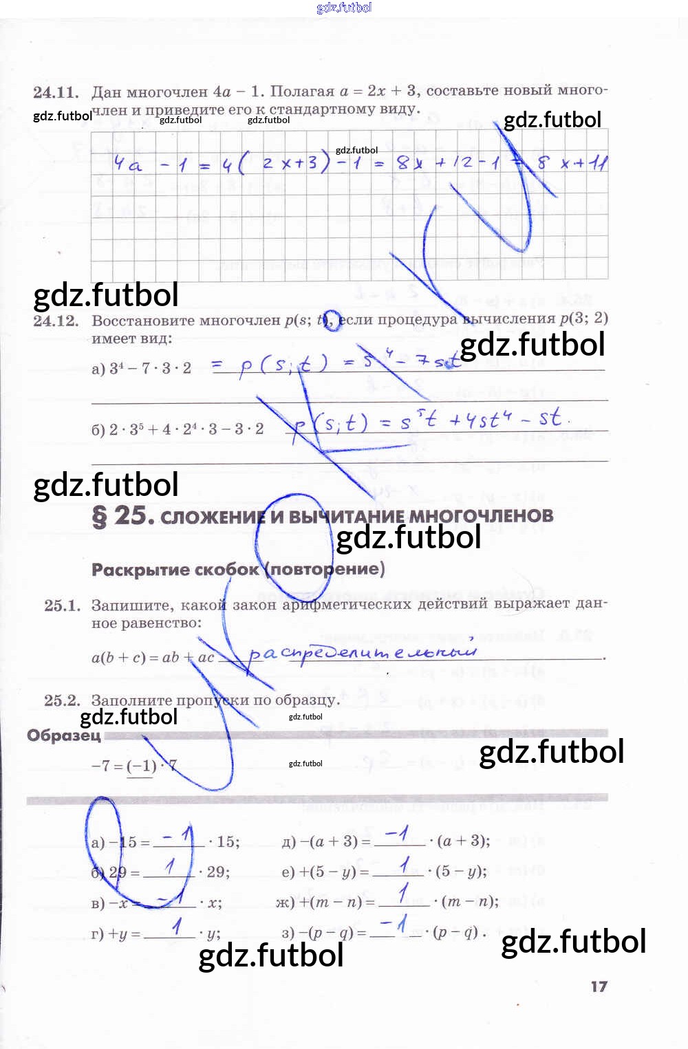 Готовые домашние задания по Алгебре за 7 класс Зубарева Рабочая тетрадь 2019 ФГОС - Часть 2. Страницы 17