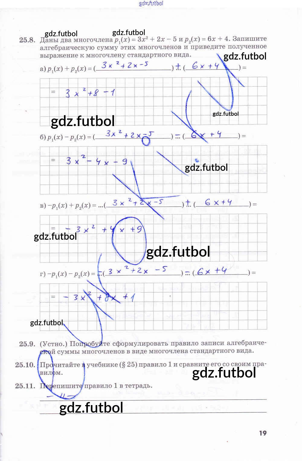 Готовые домашние задания по Алгебре за 7 класс Зубарева Рабочая тетрадь 2019 ФГОС - Часть 2. Страницы 19