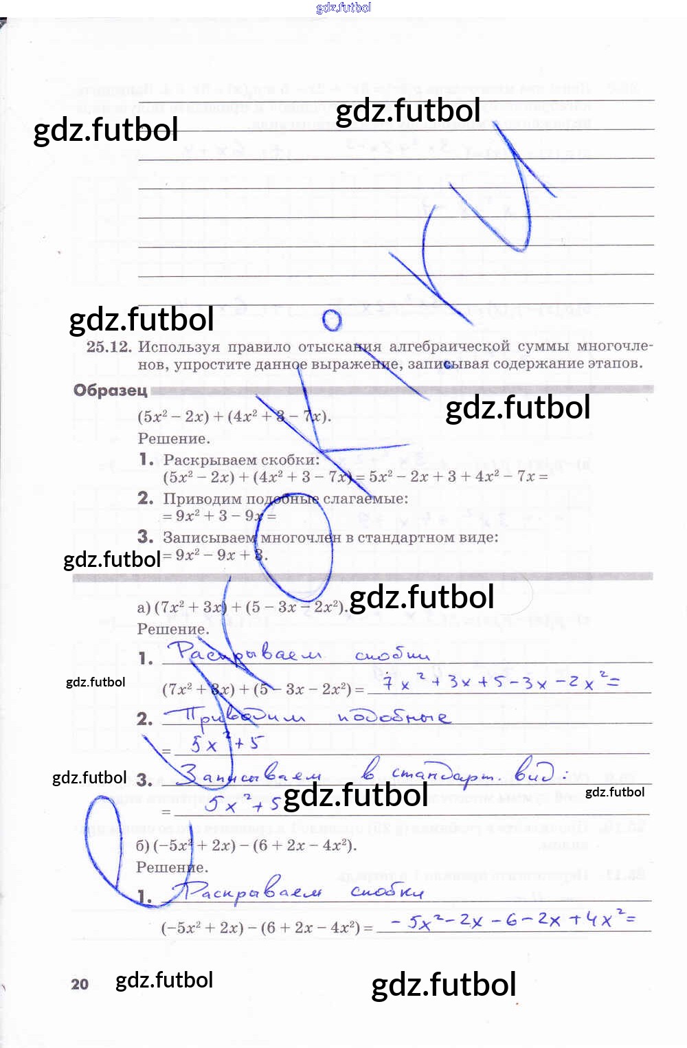 Готовые домашние задания по Алгебре за 7 класс Зубарева Рабочая тетрадь 2019 ФГОС - Часть 2. Страницы 20
