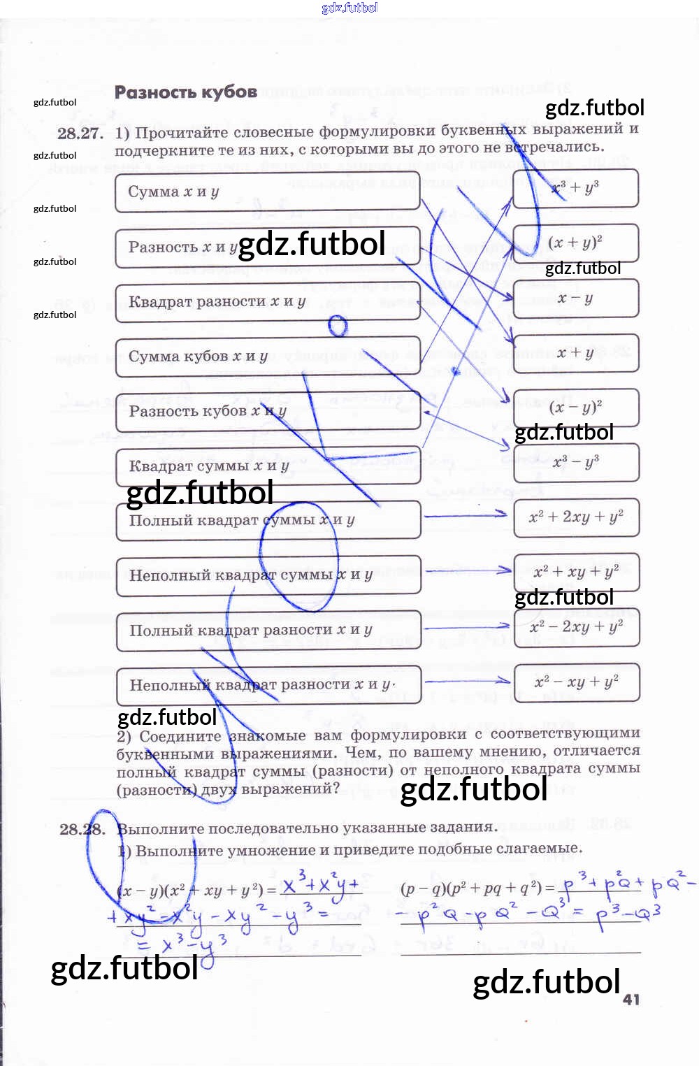 Готовые домашние задания по Алгебре за 7 класс Зубарева Рабочая тетрадь 2019 ФГОС - Часть 2. Страницы 41