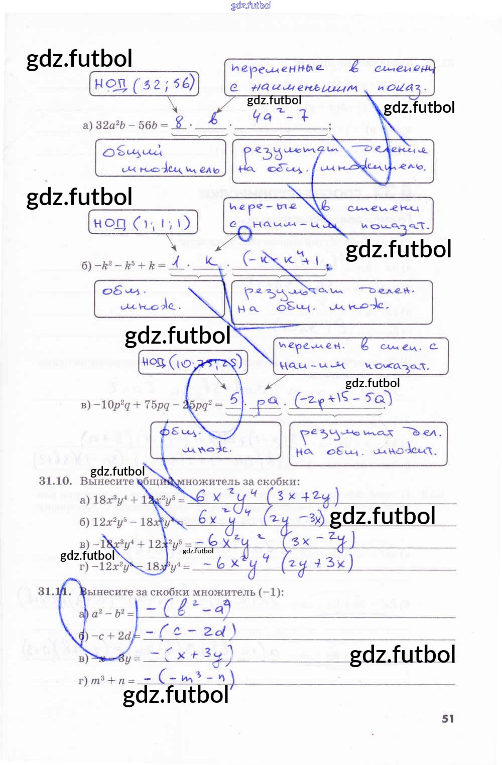 Готовые домашние задания по Алгебре за 7 класс Зубарева Рабочая тетрадь 2019 ФГОС - Часть 2. Страницы 51