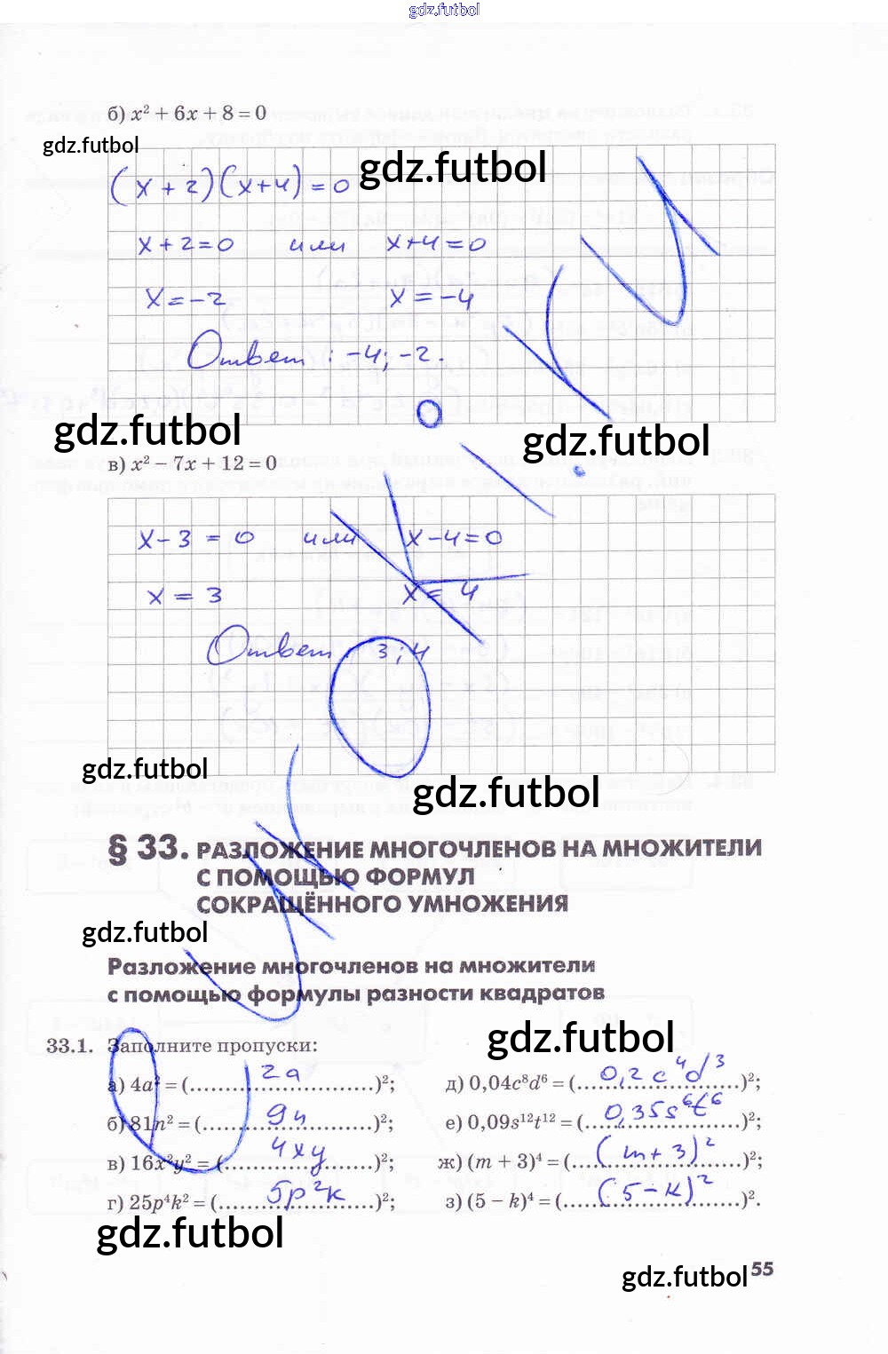 Готовые домашние задания по Алгебре за 7 класс Зубарева Рабочая тетрадь 2019 ФГОС - Часть 2. Страницы 55