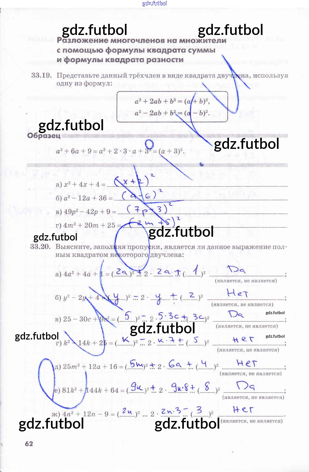 Готовые домашние задания по Алгебре за 7 класс Зубарева Рабочая тетрадь 2019 ФГОС - Часть 2. Страницы 62
