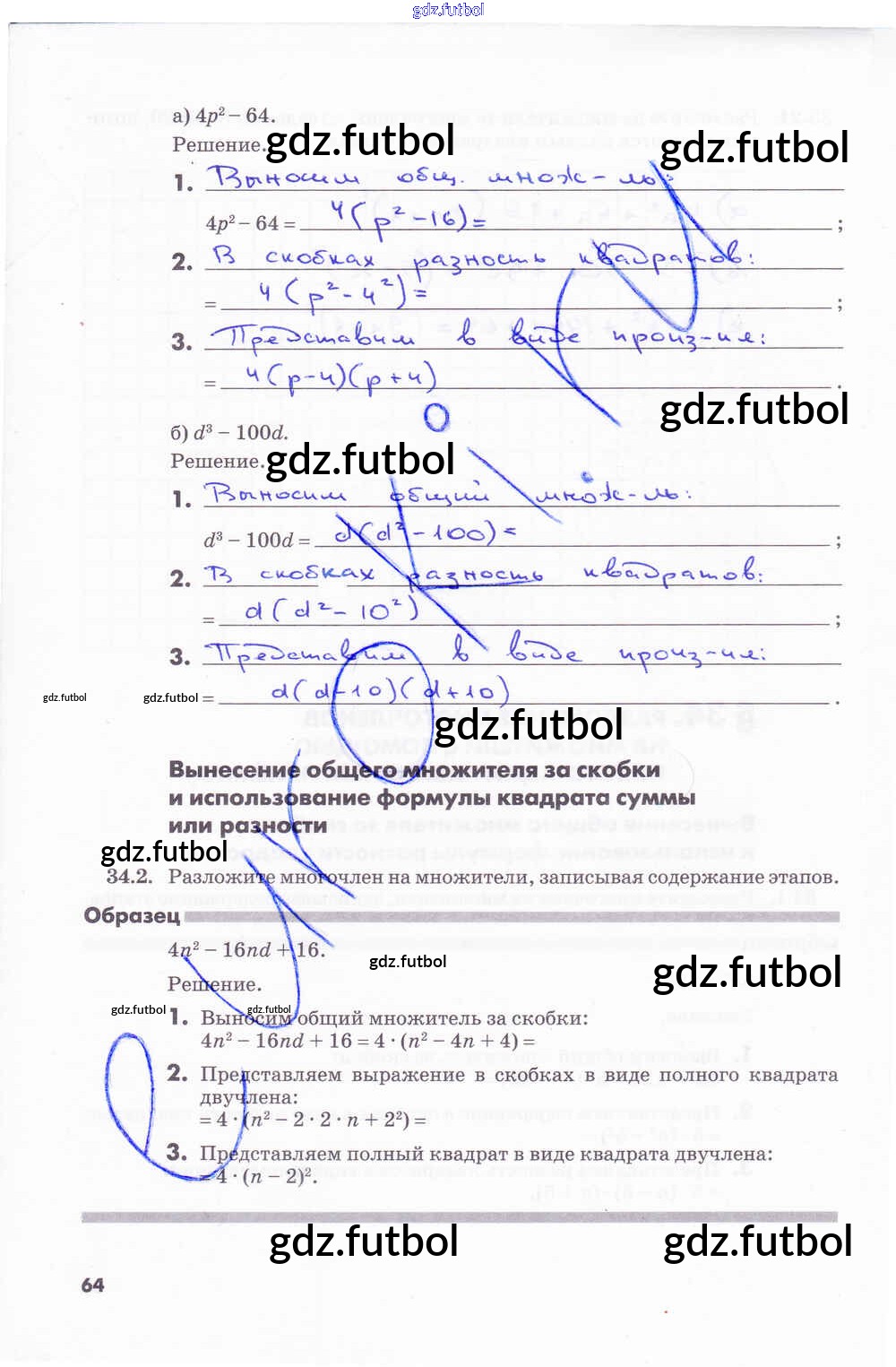 Готовые домашние задания по Алгебре за 7 класс Зубарева Рабочая тетрадь 2019 ФГОС - Часть 2. Страницы 64