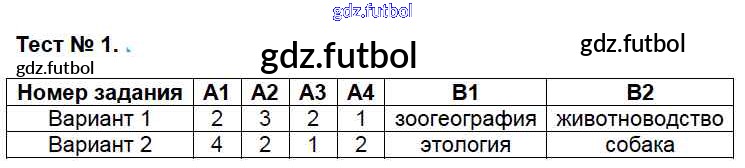 Готовые домашние задания по Биологии за 7 класс Артемьева Контрольно-измерительные материалы (КИМ) 2018 ФГОС - Тесты 1