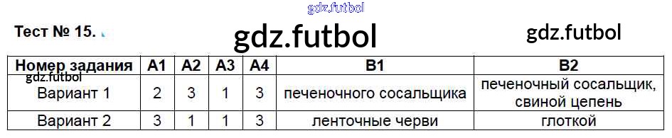 Готовые домашние задания по Биологии за 7 класс Артемьева Контрольно-измерительные материалы (КИМ) 2018 ФГОС - Тесты 15
