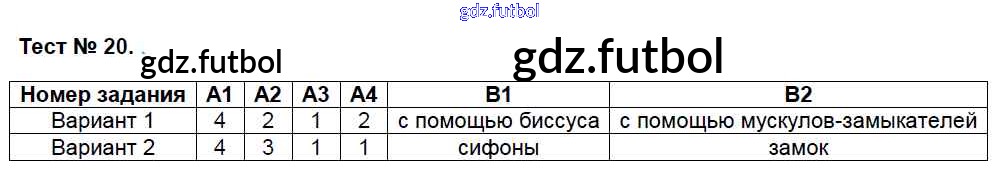Готовые домашние задания по Биологии за 7 класс Артемьева Контрольно-измерительные материалы (КИМ) 2018 ФГОС - Тесты 20