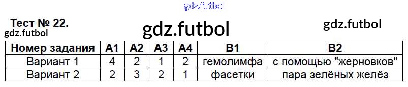 Готовые домашние задания по Биологии за 7 класс Артемьева Контрольно-измерительные материалы (КИМ) 2018 ФГОС - Тесты 22