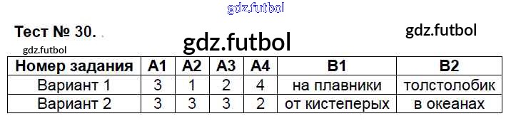 Готовые домашние задания по Биологии за 7 класс Артемьева Контрольно-измерительные материалы (КИМ) 2018 ФГОС - Тесты 30