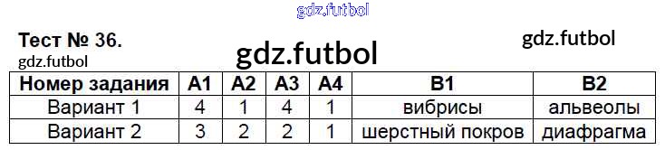 Готовые домашние задания по Биологии за 7 класс Артемьева Контрольно-измерительные материалы (КИМ) 2018 ФГОС - Тесты 36
