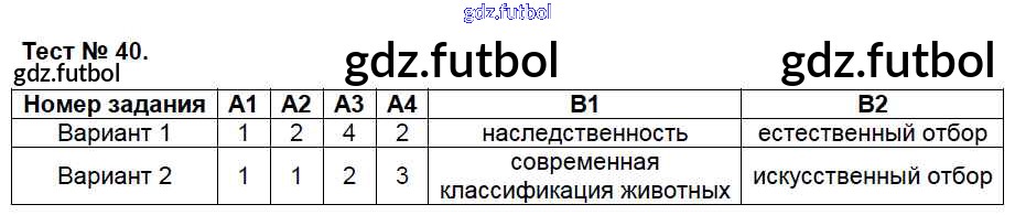 Готовые домашние задания по Биологии за 7 класс Артемьева Контрольно-измерительные материалы (КИМ) 2018 ФГОС - Тесты 40