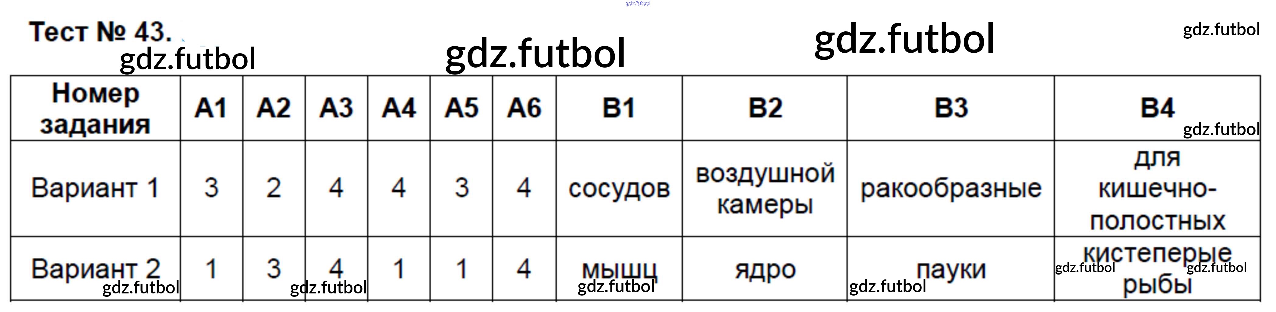 Готовые домашние задания по Биологии за 7 класс Артемьева Контрольно-измерительные материалы (КИМ) 2018 ФГОС - Тесты 43