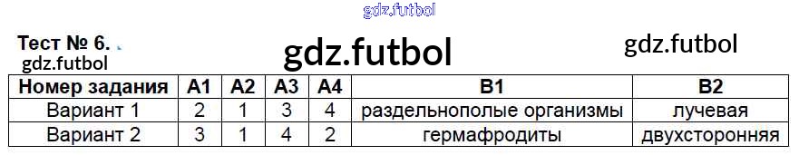 Готовые домашние задания по Биологии за 7 класс Артемьева Контрольно-измерительные материалы (КИМ) 2018 ФГОС - Тесты 6