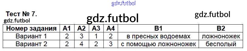 Готовые домашние задания по Биологии за 7 класс Артемьева Контрольно-измерительные материалы (КИМ) 2018 ФГОС - Тесты 7