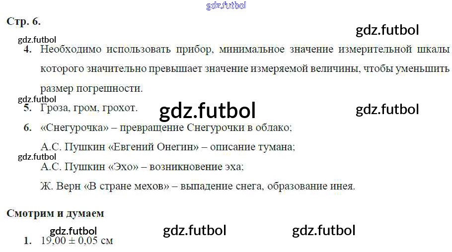 Готовые домашние задания по Физике за 7 класс Артеменков Тетрадь-тренажер Сферы 2016 ФГОС - Глава 1. Физика и мир, в котором мы живем стр.6