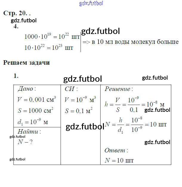 Готовые домашние задания по Физике за 7 класс Артеменков Тетрадь-тренажер Сферы 2016 ФГОС - Глава 2. Строение вещетва стр.20