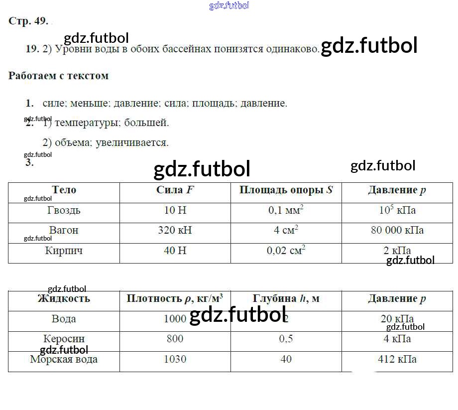 Готовые домашние задания по Физике за 7 класс Артеменков Тетрадь-тренажер Сферы 2016 ФГОС - Глава 5. Давление твёрдых тел, жидкостей и газов стр.49