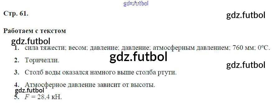 Готовые домашние задания по Физике за 7 класс Артеменков Тетрадь-тренажер Сферы 2016 ФГОС - Глава 6. Атмосфера и атмосферное давление стр.61