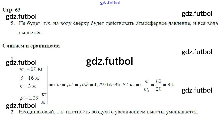 Готовые домашние задания по Физике за 7 класс Артеменков Тетрадь-тренажер Сферы 2016 ФГОС - Глава 6. Атмосфера и атмосферное давление стр.63
