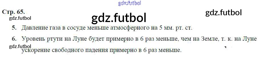 Готовые домашние задания по Физике за 7 класс Артеменков Тетрадь-тренажер Сферы 2016 ФГОС - Глава 6. Атмосфера и атмосферное давление стр.65
