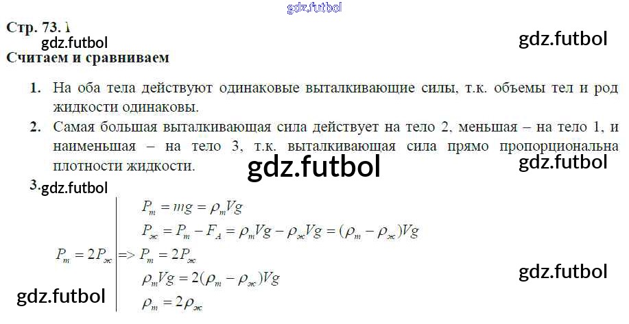 Готовые домашние задания по Физике за 7 класс Артеменков Тетрадь-тренажер Сферы 2016 ФГОС - Глава 7. Закон Архимеда. Плавание тел стр.73