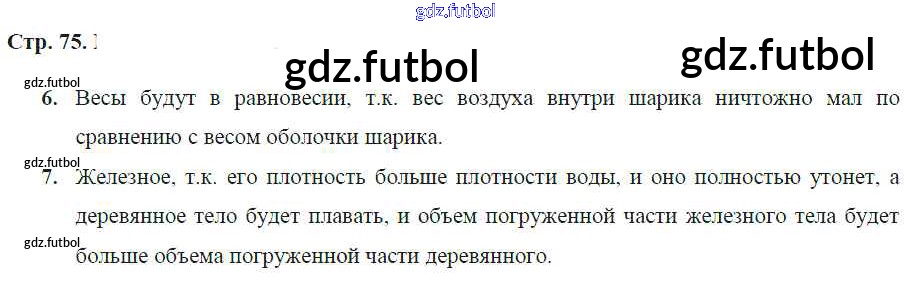 Готовые домашние задания по Физике за 7 класс Артеменков Тетрадь-тренажер Сферы 2016 ФГОС - Глава 7. Закон Архимеда. Плавание тел стр.75