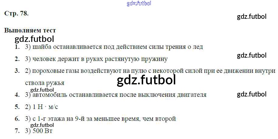 Готовые домашние задания по Физике за 7 класс Артеменков Тетрадь-тренажер Сферы 2016 ФГОС - Глава 8. Работа, мощность, энергия стр.78