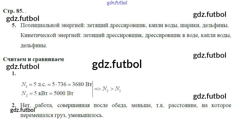 Готовые домашние задания по Физике за 7 класс Артеменков Тетрадь-тренажер Сферы 2016 ФГОС - Глава 8. Работа, мощность, энергия стр.85