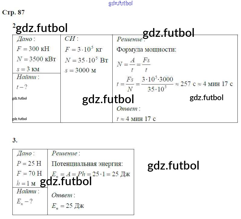 Готовые домашние задания по Физике за 7 класс Артеменков Тетрадь-тренажер Сферы 2016 ФГОС - Глава 8. Работа, мощность, энергия стр.87