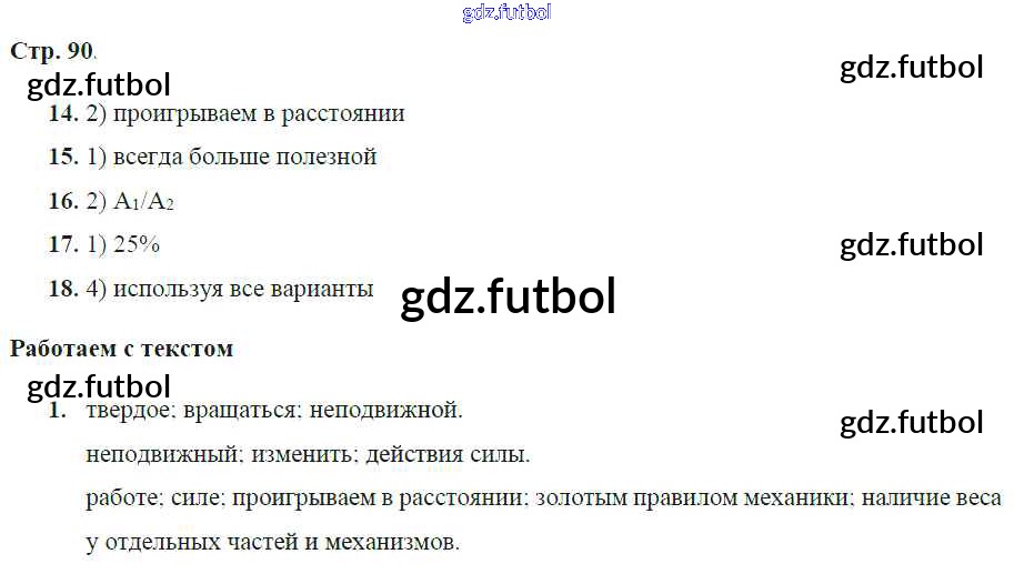 Готовые домашние задания по Физике за 7 класс Артеменков Тетрадь-тренажер Сферы 2016 ФГОС - Глава 9. Простые механизмы. "Золотое правило" механики стр.90