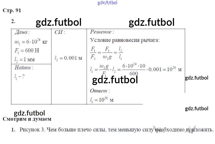 Готовые домашние задания по Физике за 7 класс Артеменков Тетрадь-тренажер Сферы 2016 ФГОС - Глава 9. Простые механизмы. "Золотое правило" механики стр.91